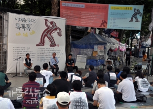 이 곳은 씽용자동차 분향소 앞이다. 지난 한진중공업 정리해고에 대해 우리는 앞서 말씀하신 것처럼 희망버스라는 자발적인 봉기로 맞섰다.