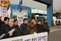 기자회견을 마친직후에 법원집행관이 방해금지가처분 현수막에 대해 강제집행을 시도했습니다.