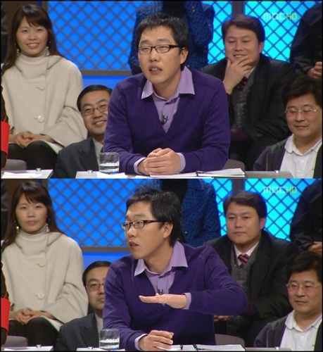 18일 방송 된 MBC TV '100분토론' 400회 특집에 출연한 김제동은 사회자 손석희 교수가 올해 가장 큰 이슈에 대해 묻자 "세계발 경제위기"라고 대답했다.