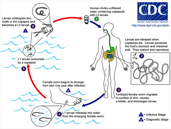 2) Greenaway C. Dracunculiasis (guinea worm disease). Canadian Medical Association Journal 2004; 170: 495-500.