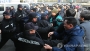 (인천=연합뉴스) 하사헌 기자 = 지난달 24일부터 사측의 정리해고 통보에 반발하는 노조원들의 점거농성이 이어지고 있는 인천시 부평구 청천동 대우자동차판매㈜에서 10일 오후 사내에서 열리고 있는 금속노조의 '대우자판 투쟁승리를 위한 결의대회'에 회사밖의 노조원이 참석할 수 있도록 출입을 허용할 것을 요구하며 노조원들이 회사정문을 차단 중인 경찰과 몸싸움을 벌이고 있다. 2011.2.10 toadboy@yna.co.kr