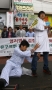 9일 인천시 연수구 옥련동 황우여 한나라당 원내대표 사무실 앞에서 인천 시민단체 소속 40여명이 경제자유구역법 개정 반대 집회뒤 퍼포먼스를 벌이고 있다. /박영권기자 pyk@itimes.co.kr