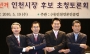 인천시장 선거에 출사표를 던진 여야 후보들이 방송 토론회에 참석, 인천의 미래에 대한 청사진을 제시했다. 안상수(63) 한나라당, 송영길(47) 민주당, 김상하(46) 진보신당, 백석두(55) 평화민주당 인천시장 후보는 19일 오후 남구 경인방송 iTVFM 촬영장에서 열린 6·2 지방선거 인천시장 후보 초청 토론회에 참석했다. <토론내용 요약 5면> 네 후보들은 저마다 자신들이 향후 4년 동안 인천 시정을 이끌 적임자라고 주장하며 ▲인천시 재정문제 ▲인천경제자유구역 발전 ▲구도심 활성화 ▲교육·복지 수준 개선 등의 지역 현안을 주제로 정책 대결을 벌였다. 안 후보는 인천시의 재정상황에 대해 크게 걱정할 것이 없다는 입장을 밝혔다. 아울러 인천경제자유구역은 제1단계 기반조성 작업이 마무리된 만큼 향후 국내외 유수의 기업에 대한 유치 작업에 박차를 가하겠다고 약속했다. 또 구도심 활성화와 교육·복지 수준 향상을 위해 기존 계획들을 다시 면밀하게 검토하겠다고 말했다. 송 후보는 안 후보 재임기간이었던 지난 8년 동안 인천시가 추진한 각종 사업들이 전혀 점검과정을 거치지 않은 채 진행됐다고 지적하고 시정 쇄신 차원에서 지방정권 교체가 필요하다고 주장했다. 송 후보는 핵심 중소기업 육성을 통한 지역 일자리 창출을 제1공약으로 제시했다. 김 후보는 지역의 환경여건 개선과 저소득층 지원정책을 언급하며 차별화를 시도했다. 김 후보는 지역의 녹지축 완성을 위해 기존 도시계획의 전면적인 손질을 약속했으며 경제자유구역 내 임대주택 공급 확대를 공약했다. 백 후보는 김대중 전 대통령의 유지를 이어 받아 중산층과 서민을 위한 시정을 펼치겠다는 의지를 밝혔다. (사)인천언론인클럽이 주관하고 인천일보와 경인방송 iTVFM을 비롯 남인천방송·경기일보·경인일보·기호일보·인천신문·중부일보가 공동주최한 이날 토론회는 모두발언-언론인 질문·후보자 응답-후보자 상호질문-마무리발언 순으로 진행됐다. /유광준기자 (블로그)june